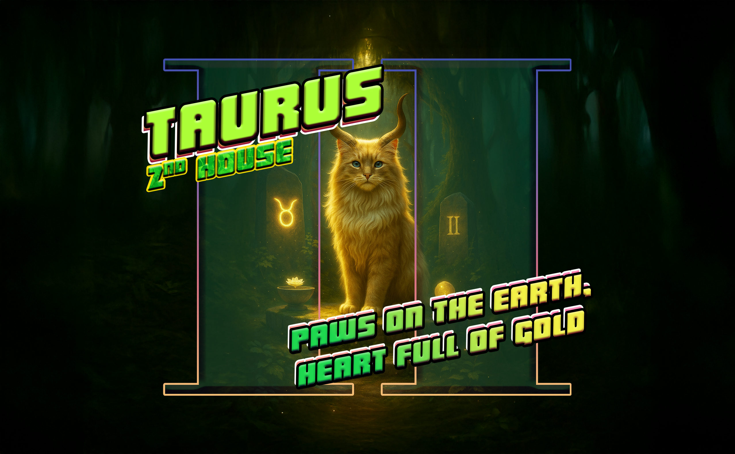 In the celestial clowder of the zodiac, Taurus guards the Second House — the sacred realm of value, security, and self-worth. This is the house where we ask: What do I truly treasure? What makes me feel safe? What is mine to keep, build, and protect?
