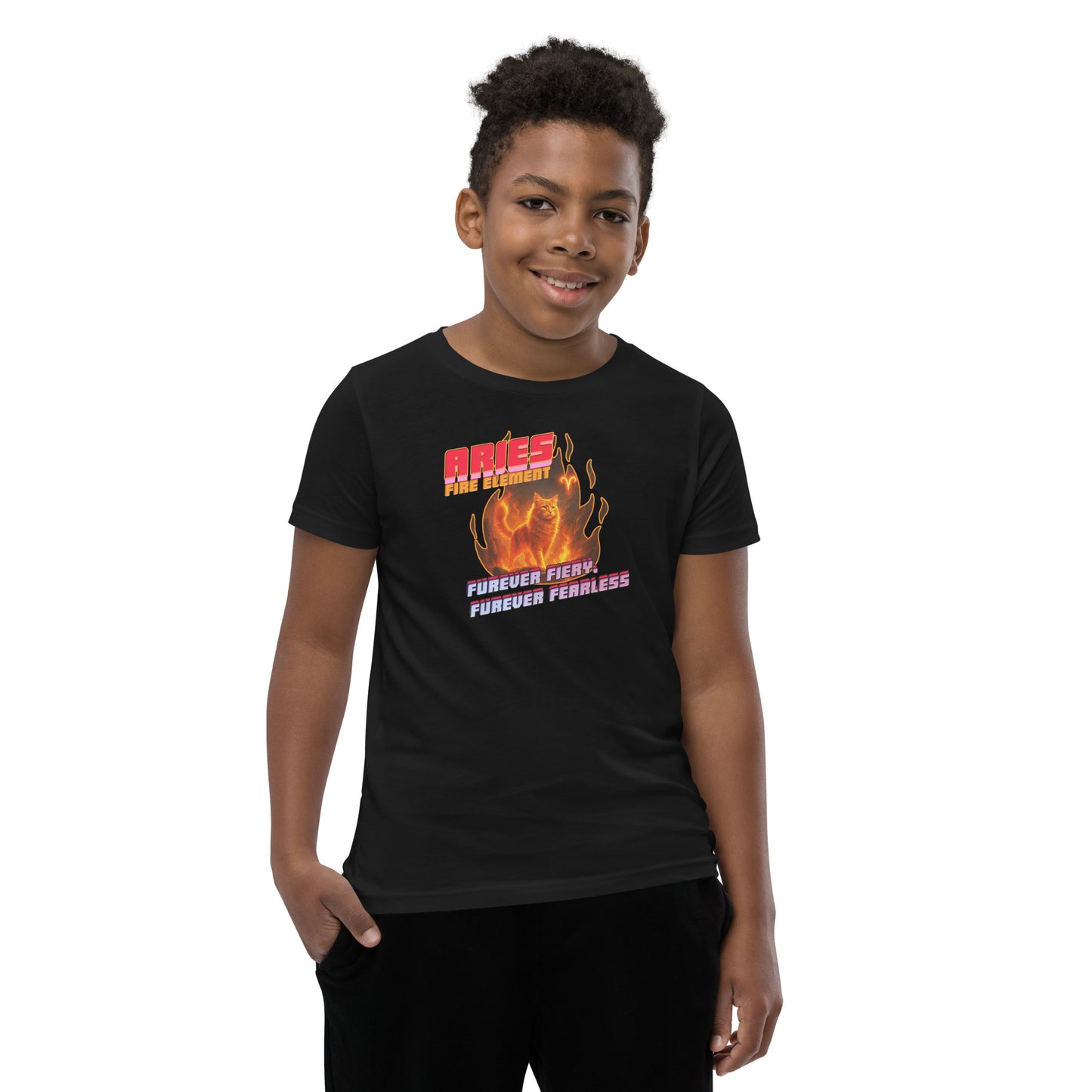CosmiCats: ZodiCats Aries Fire Element Youth Short Sleeve T-Shirt