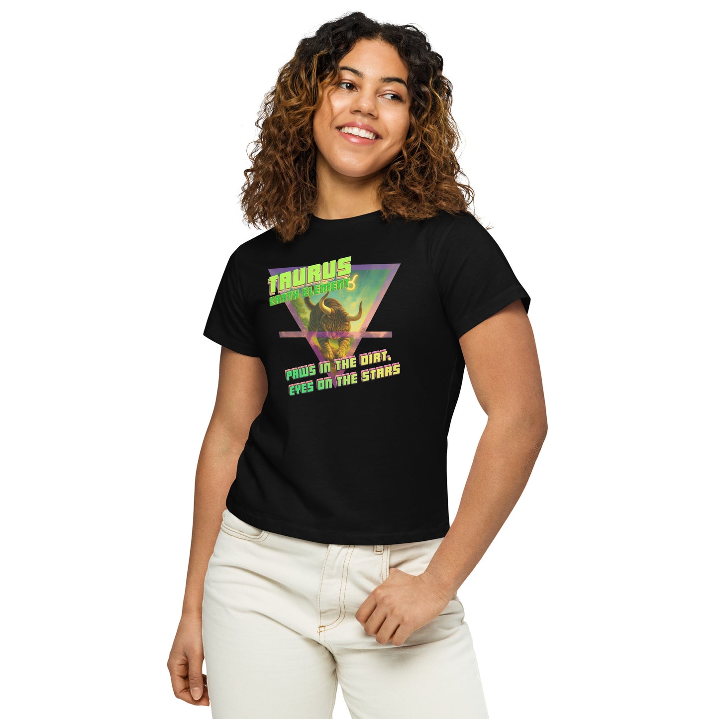 CosmiCats: ZodiCats Taurus Earth Element Women’s high-waisted t-shirt