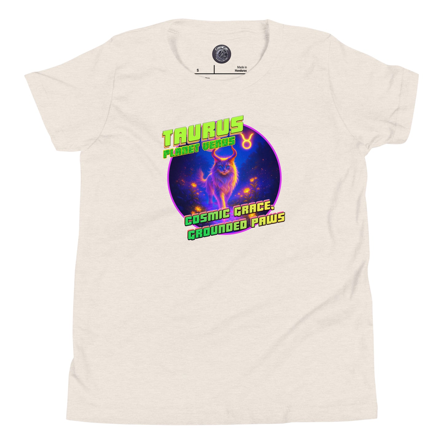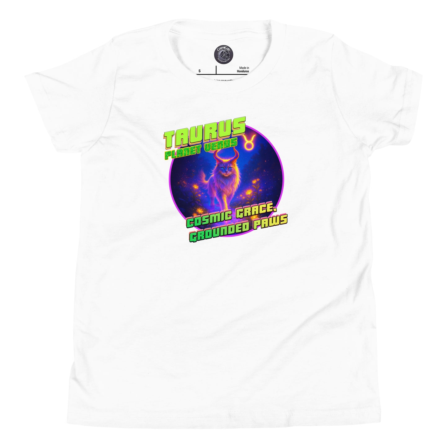 CosmiCats: ZodiCats Taurus Planet Venus Youth Short Sleeve T-Shirt
